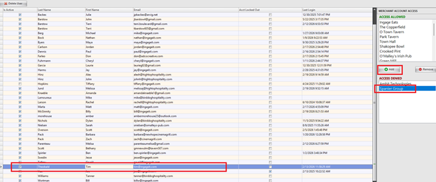 Click on the store you want to give them access