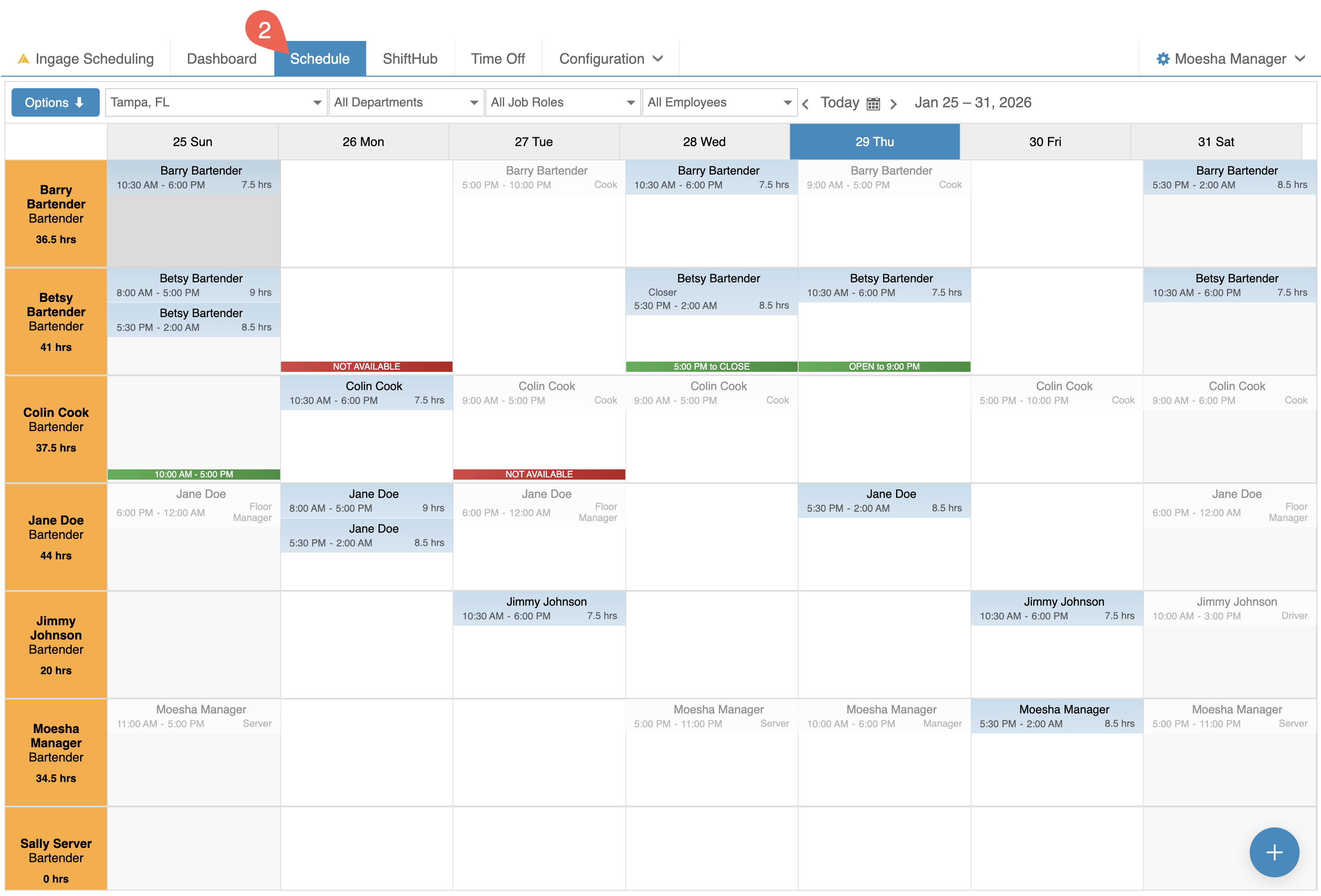 This area is designed to give you a clear visual overview of staffing needs while making it easy to update shifts as your business needs change.