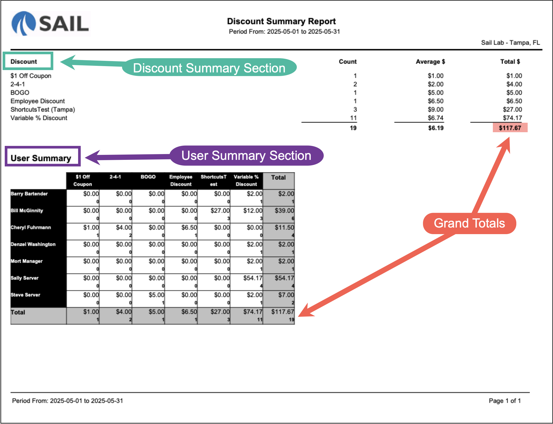 Reconcile with the Discount Audit Reports to drill into transaction-level details if needed.
