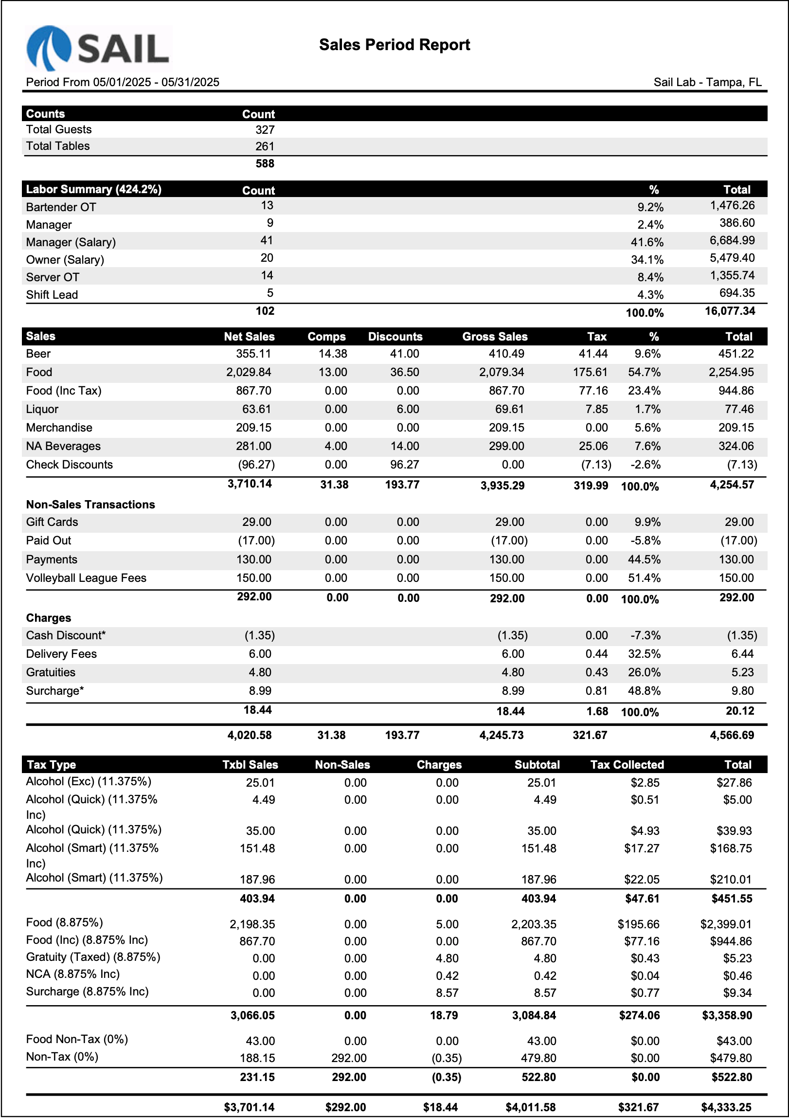 The Sales Period Report provides a summary of all sales activity for any selected date range.