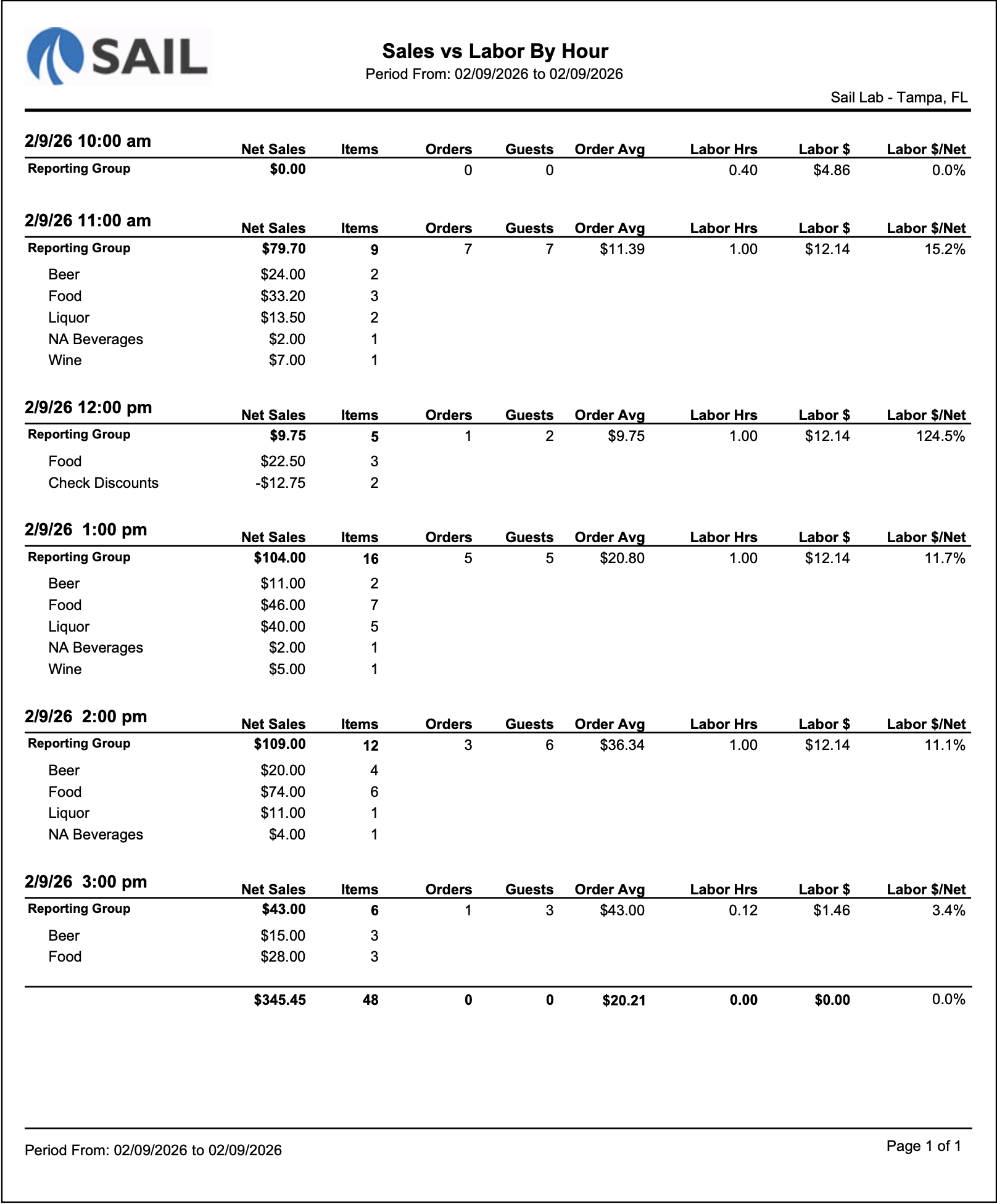 This helps identify peak sales hours and times when labor costs may be higher than necessary.