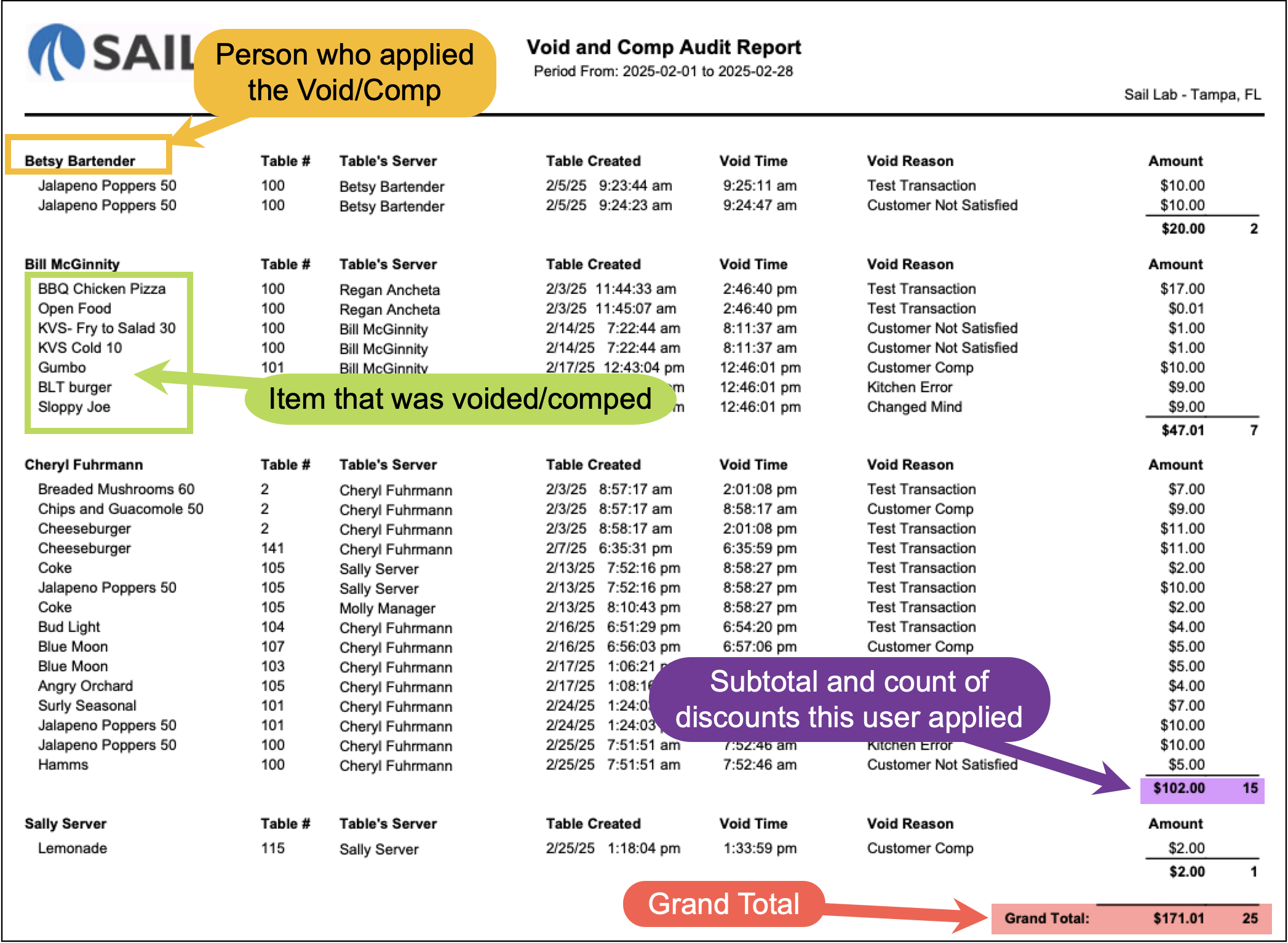 Grand Total ($) – The combined total of all voids and comps for the reporting period.