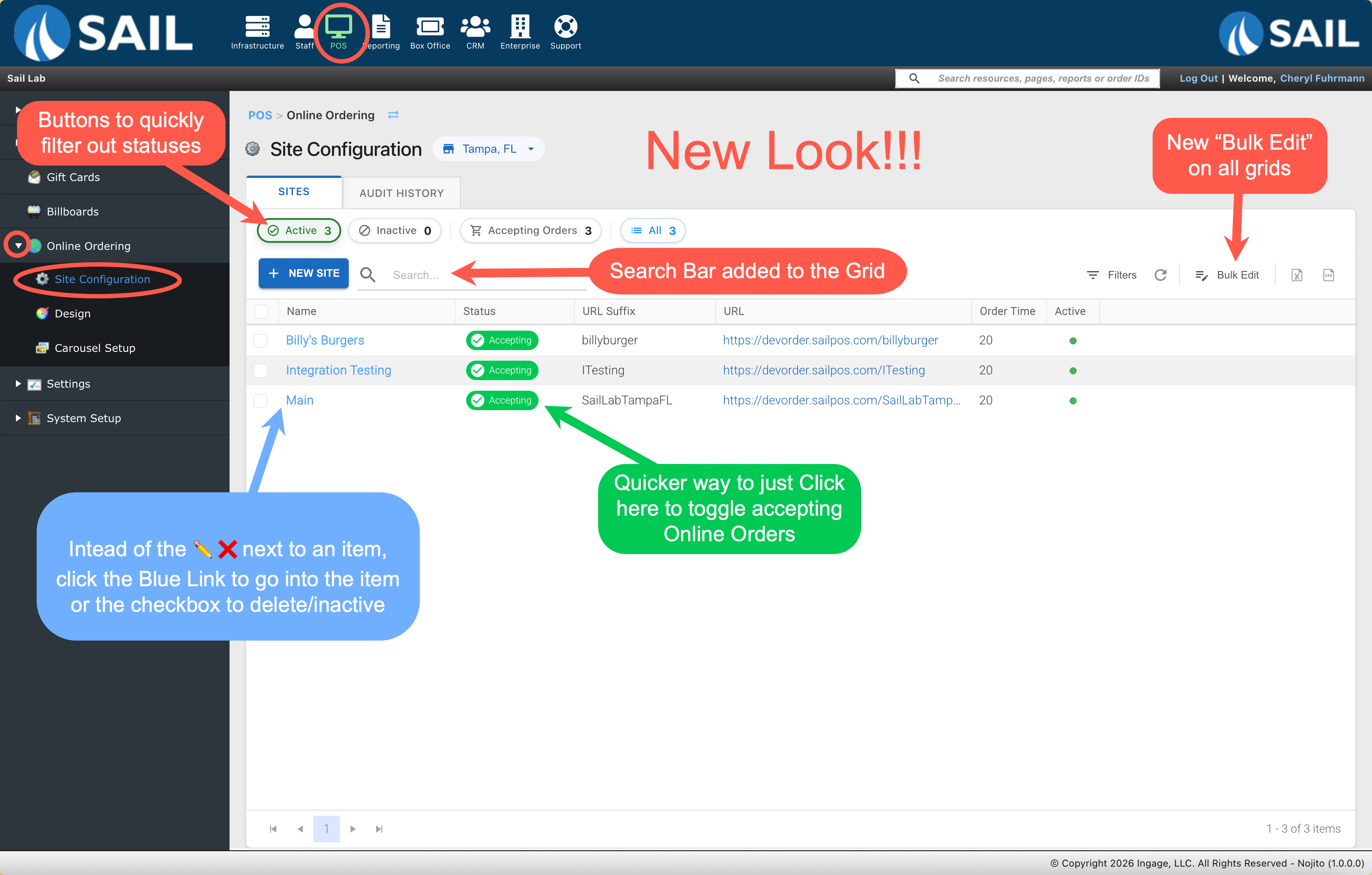 - This page includes the same functionality you’re used to, along with a new layout and a few usability improvements—like faster load times, added search within grids, bulk editing, and quicker ways to manage order status.