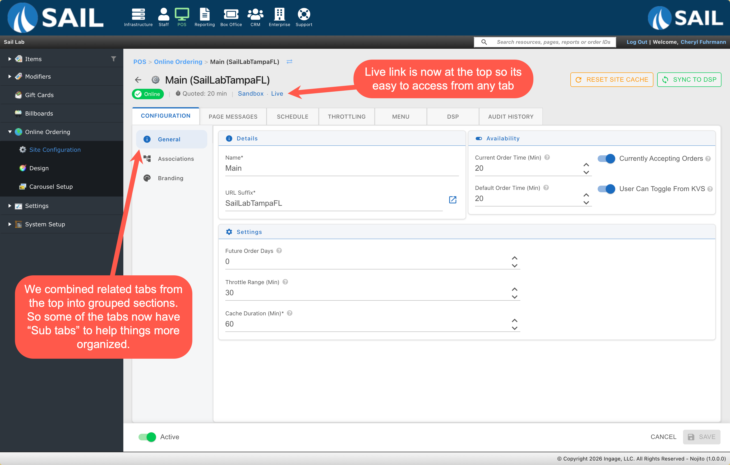 - The first update is now available in Online Ordering → Site Configuration, giving you an early look at the refreshed Backoffice experience.