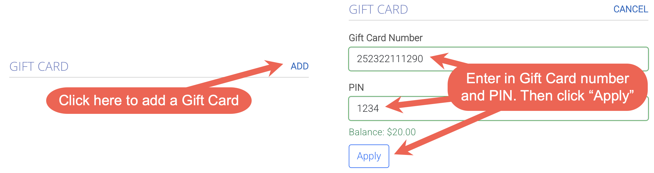 - If a gift card has a PIN, it will only be required when the card number is entered manually, such as on a terminal, handheld, or during online ordering or website lookup.