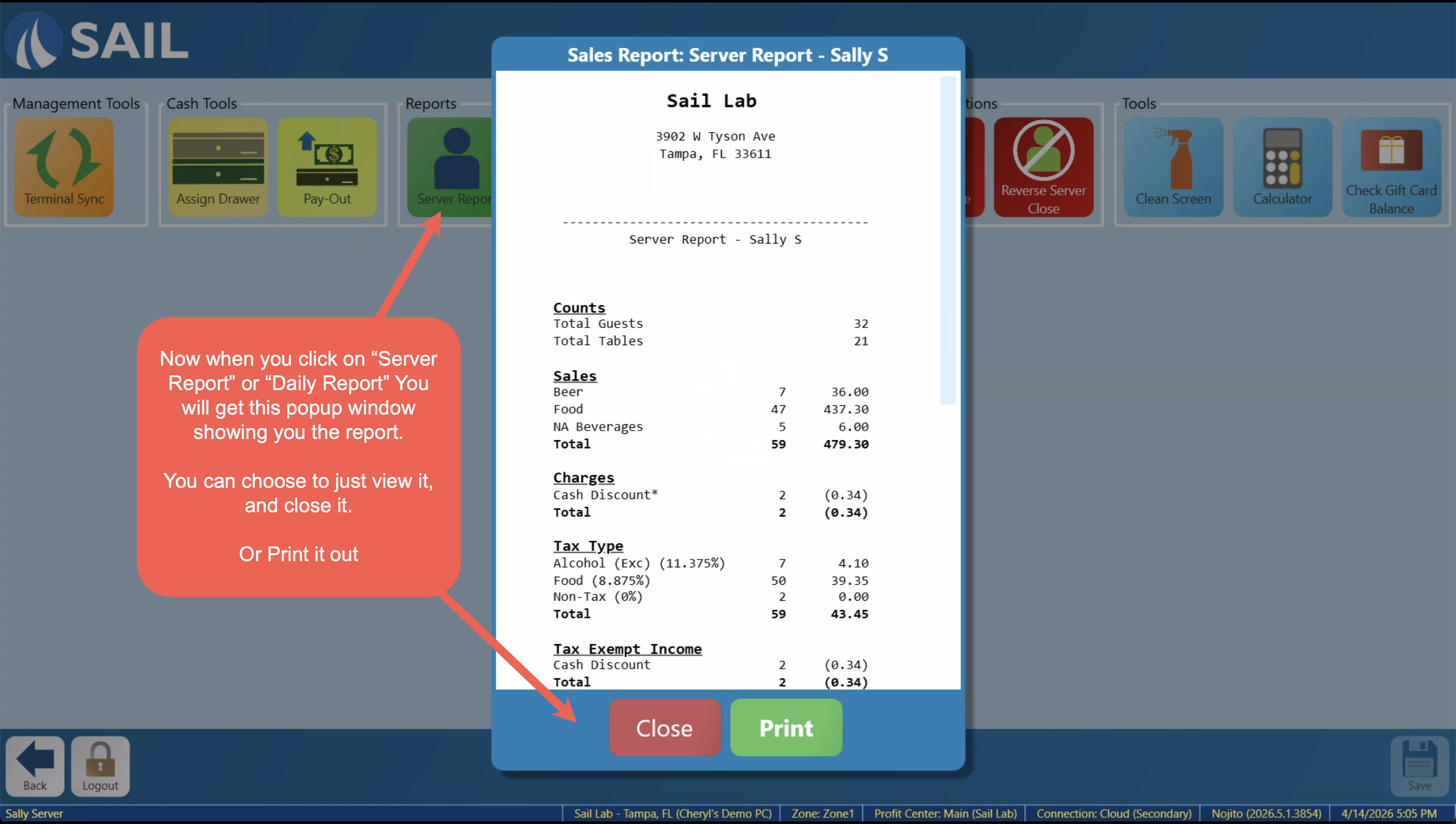 You can now open Server Reports and Daily Reports directly on the terminal to review them before deciding to print. This makes it easier for servers and managers to quickly check sales without wasting paper on reports they only need to view.
