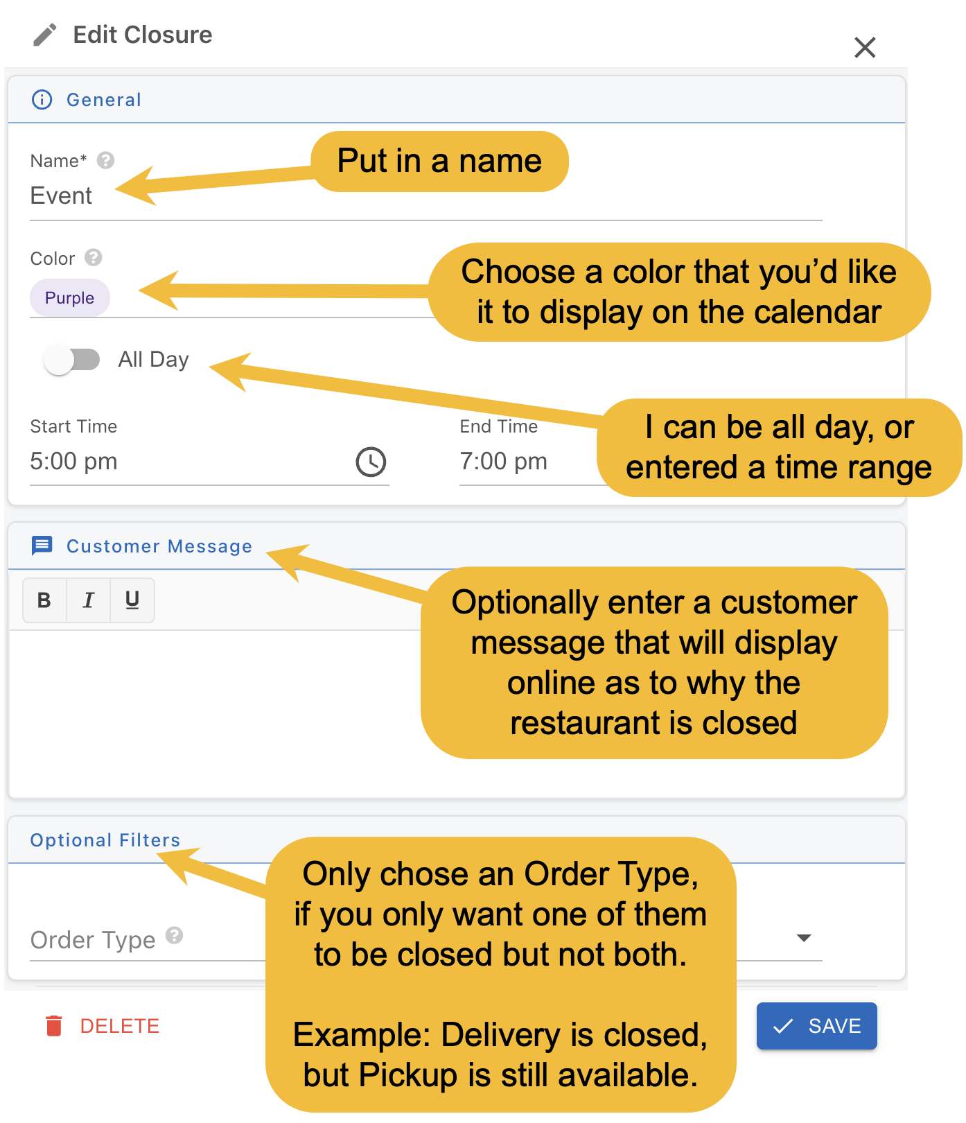 - Next, double click on the day you'd like to close, and you'll see this pop-up