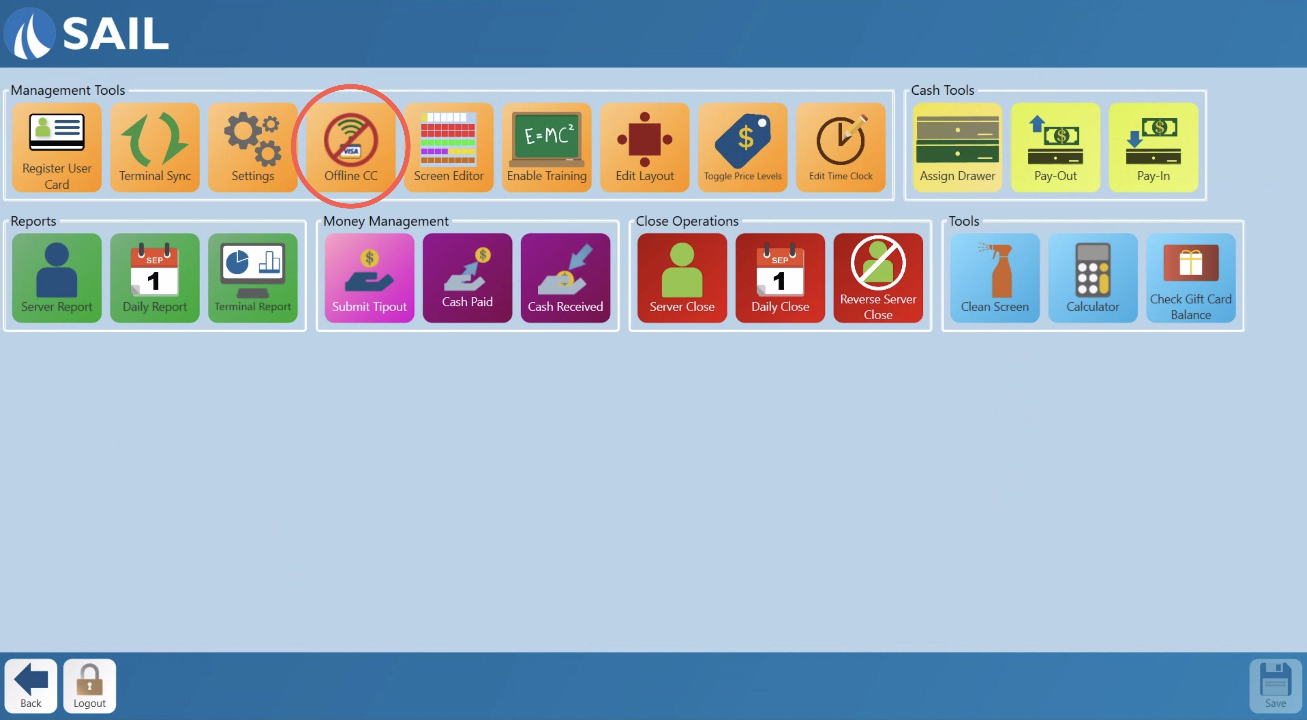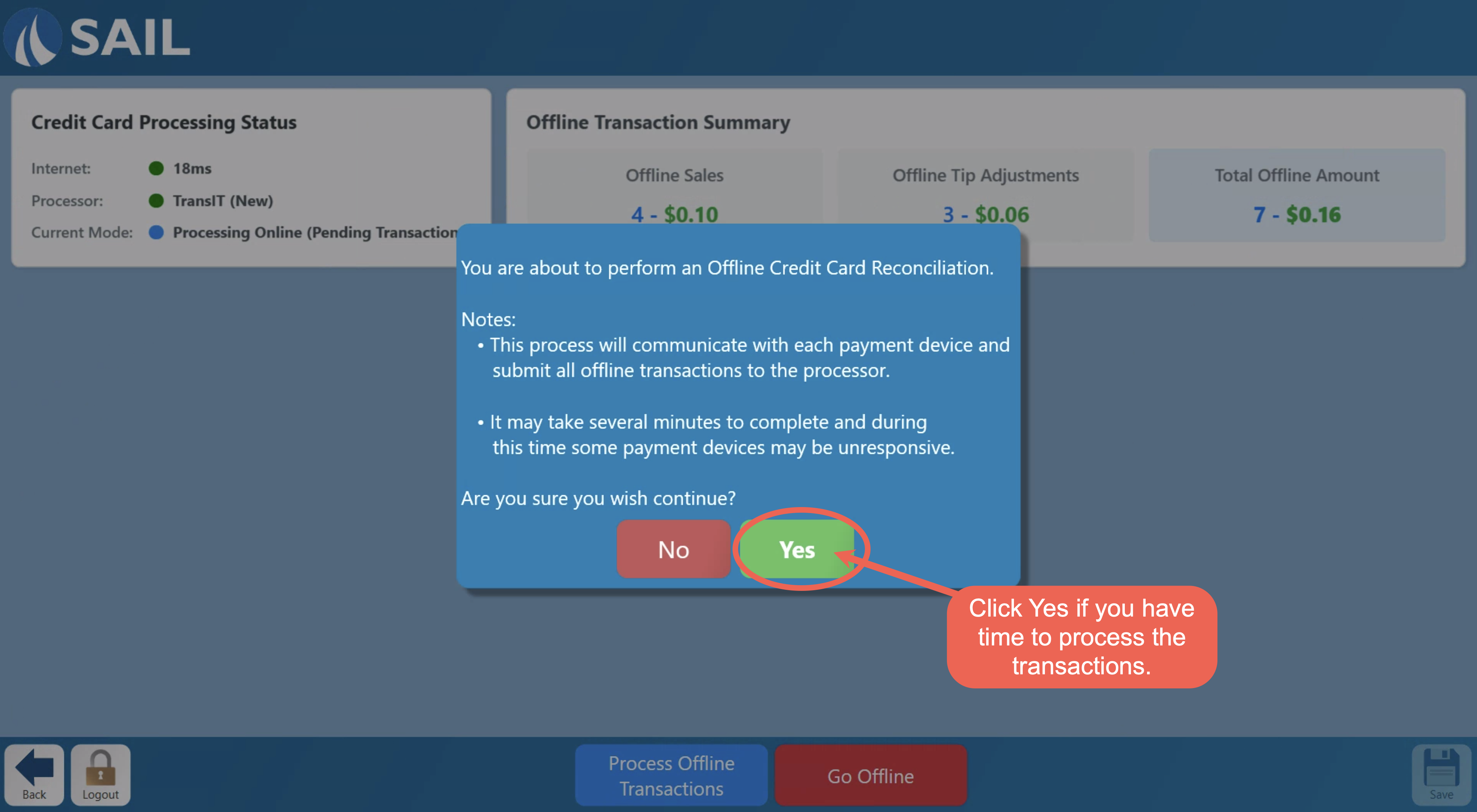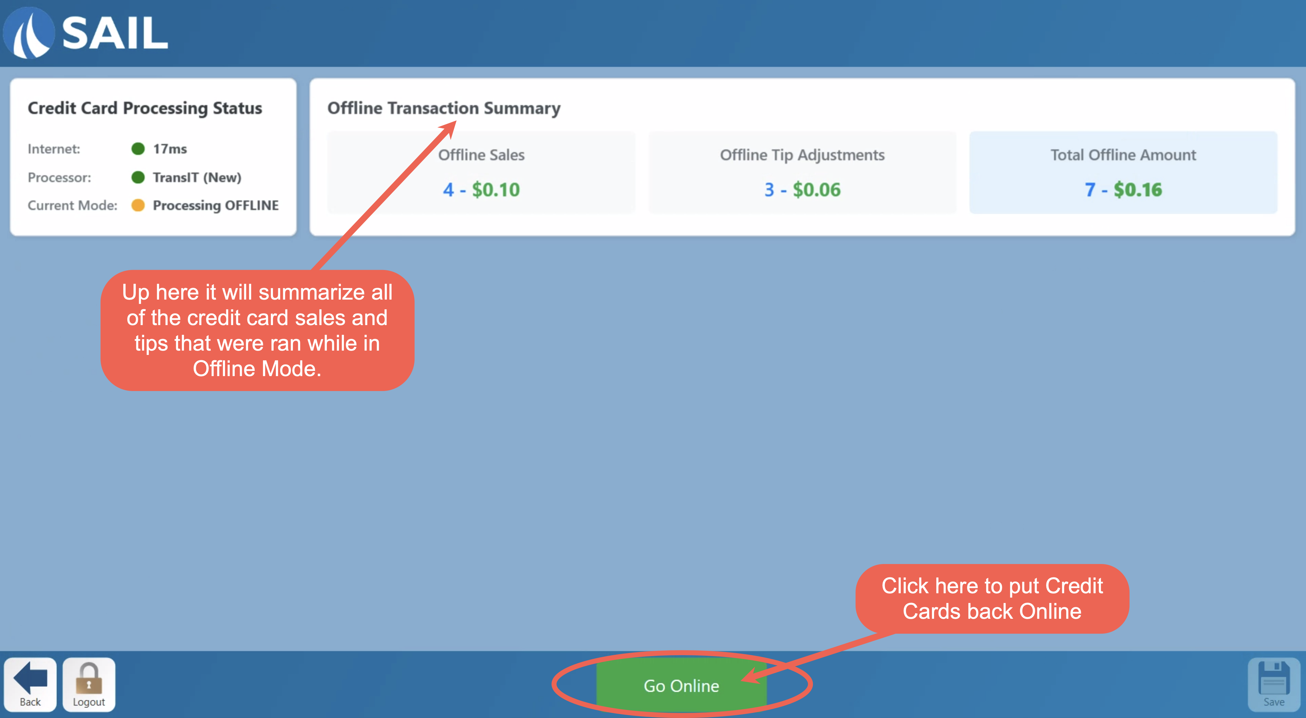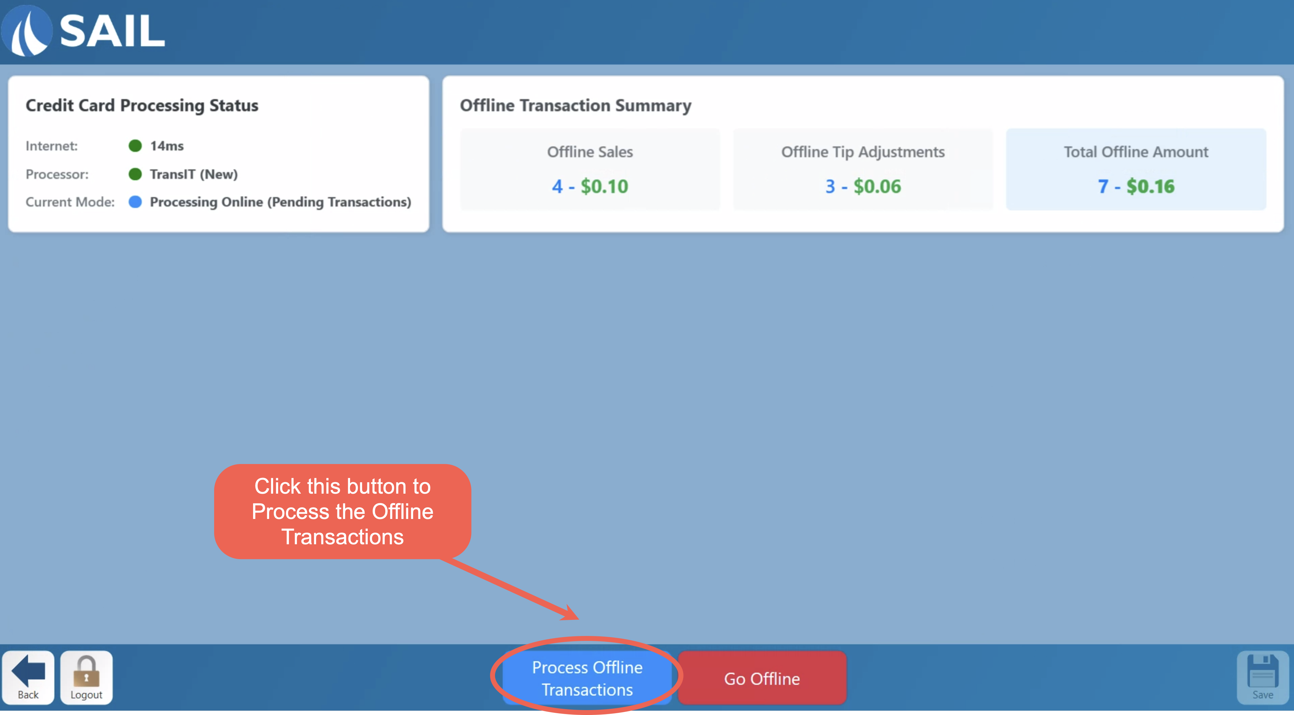 - Once in this screen you will see a blue "Process Offline Transaction" button on the bottom tool bar
