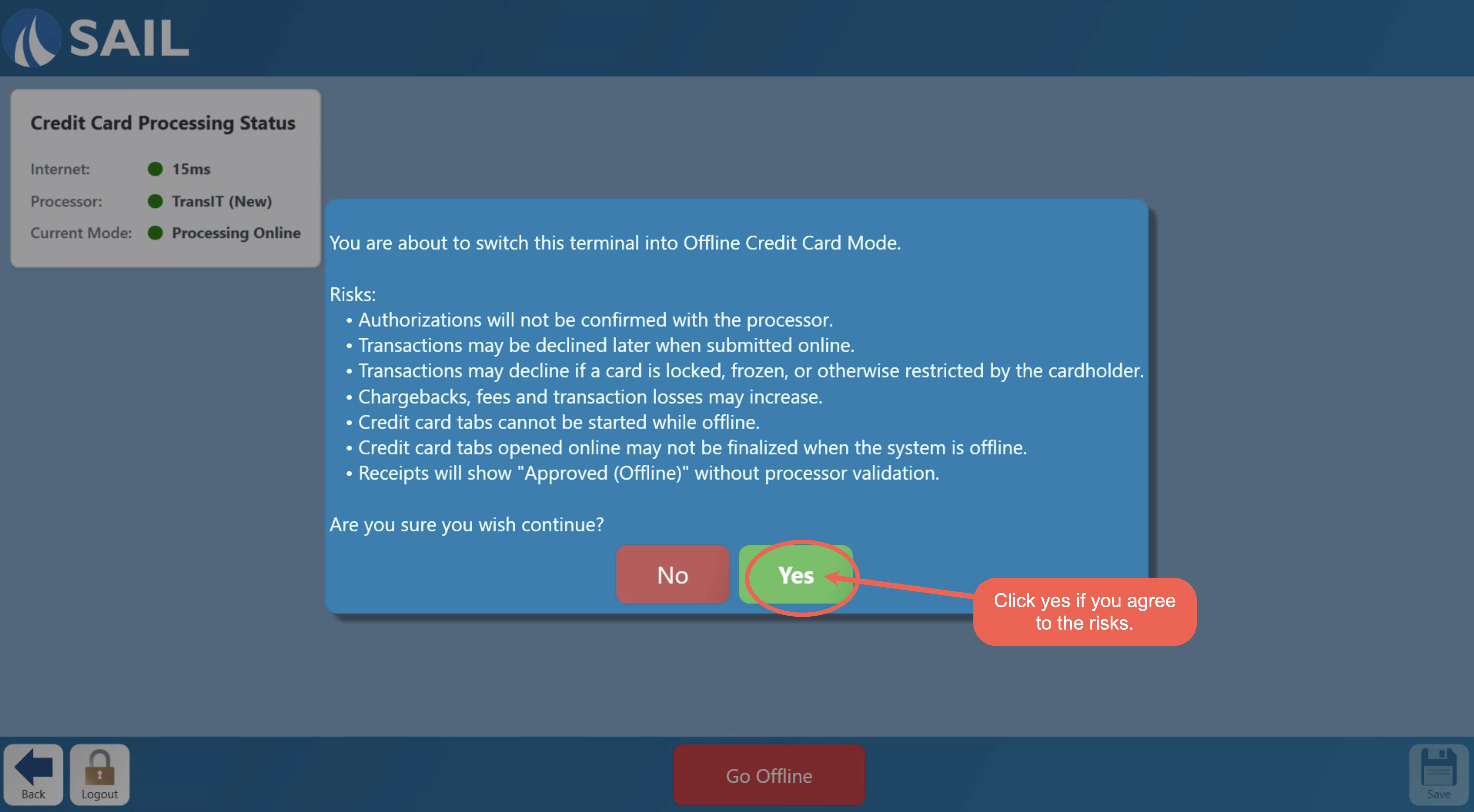 - When you click the Go Offline button you will get a popup message explaining the risks of going into Offline mode, and you will need to click yes to confirm.