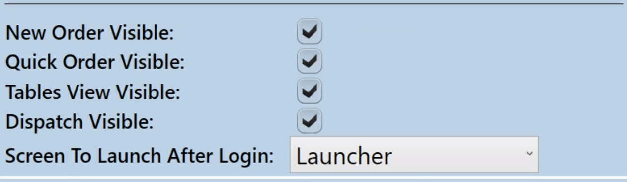 17. Screen to Launch after Login: Set the screen that automatically opens when a user logs in. The default is the Launcher screen, but you can choose based on the station’s role: