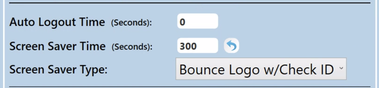 12. Auto Logout Time: Set how many seconds of inactivity will pass before the system automatically logs the user out. Helps prevent unauthorized use if someone walks away.