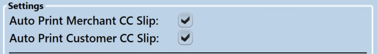 11. Auto Print Customer CC Slip: When enabled, the terminal will automatically print the customer copy of the credit card receipt after each transaction.
