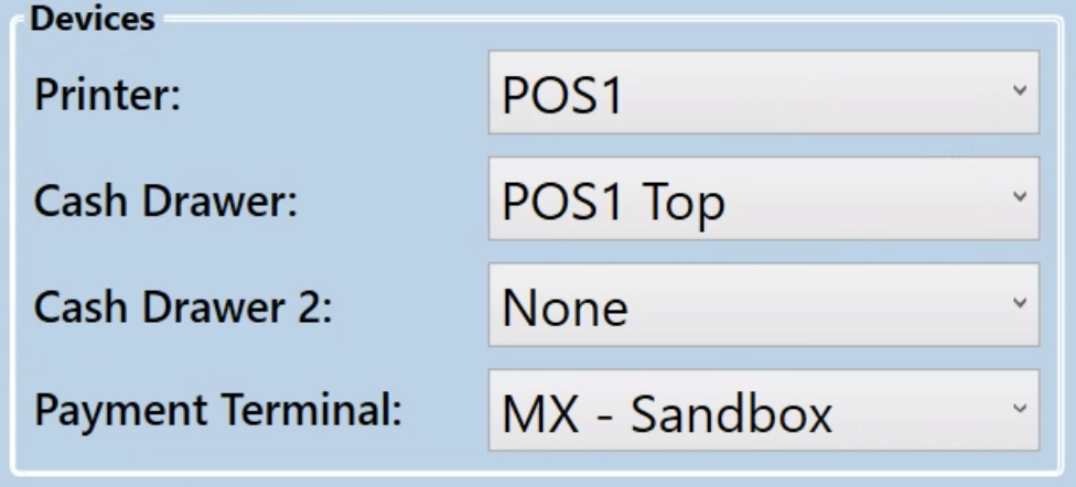 4. Payment Terminal: This setting links the terminal to your payment device or credit card processor. It can be set to use the terminal’s built-in card swipe or an external EMV/chip reader. Like printers and drawers, payment terminals are usually named after the terminal they’re paired with for easier identification and configuration.